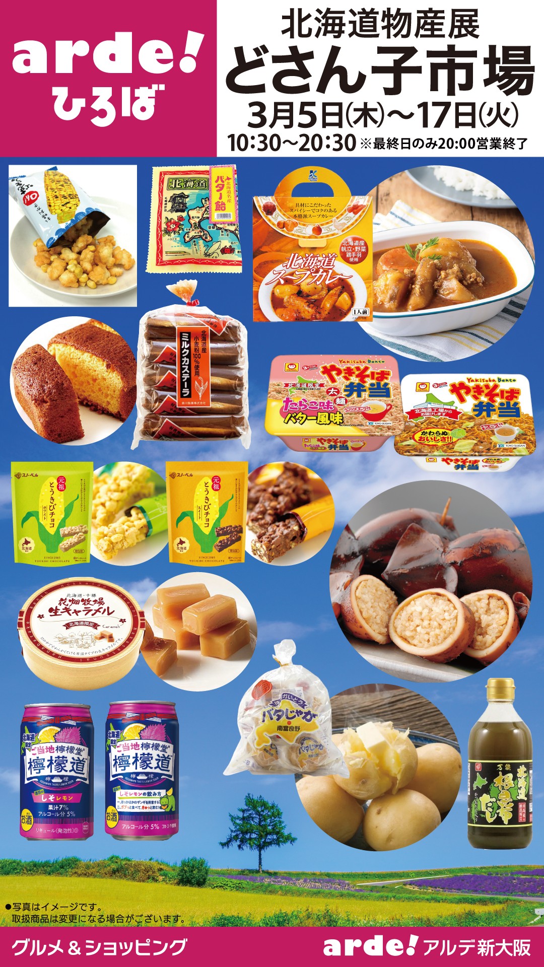 2026年3月5日(木)~3月17日(火)の期間、アルデひろばにて期間限定ショップ「北海道物産展 どさん子市場」が営業いたします。 営業場所:アルデ新大阪催事スペース「アルデひろば」 営業時間:10:30₋20:30※最終日のみ20:00営業終了